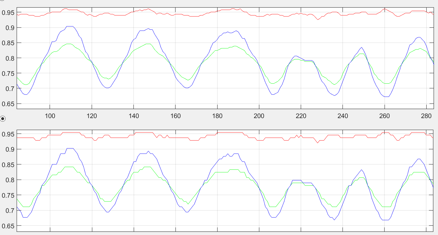- 计算距离时用相位好像比不用相位效果更差。因为不用相位的精度是声速除以采样率(96k)精度为3.5mm左右,但是用相位要把距离先对波长取整,而波长是8.5mm左右,虽然可以用相位进行补偿,但是实验看起来补偿效果不是太好,用相位的测得的距离波动更大一些。